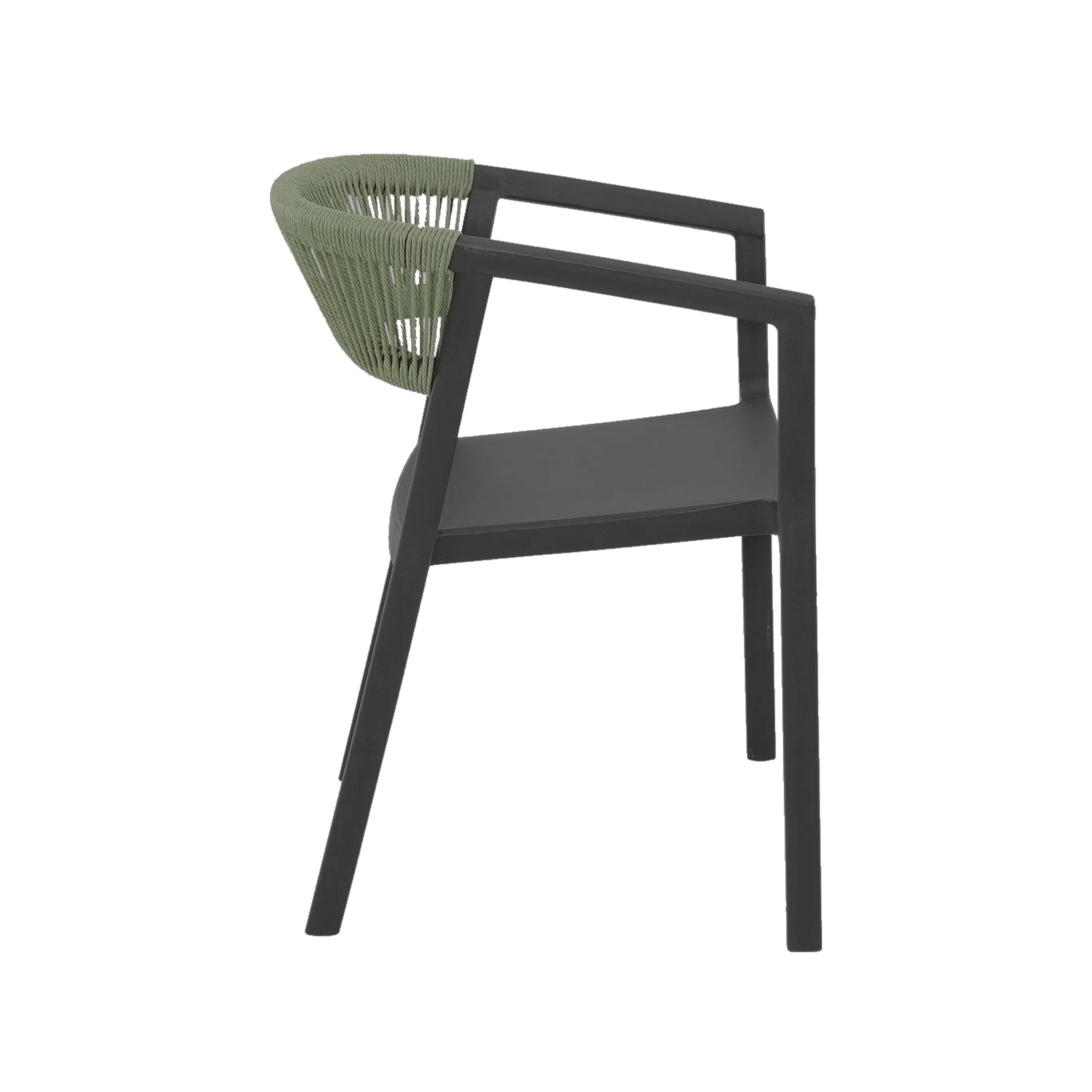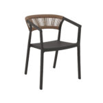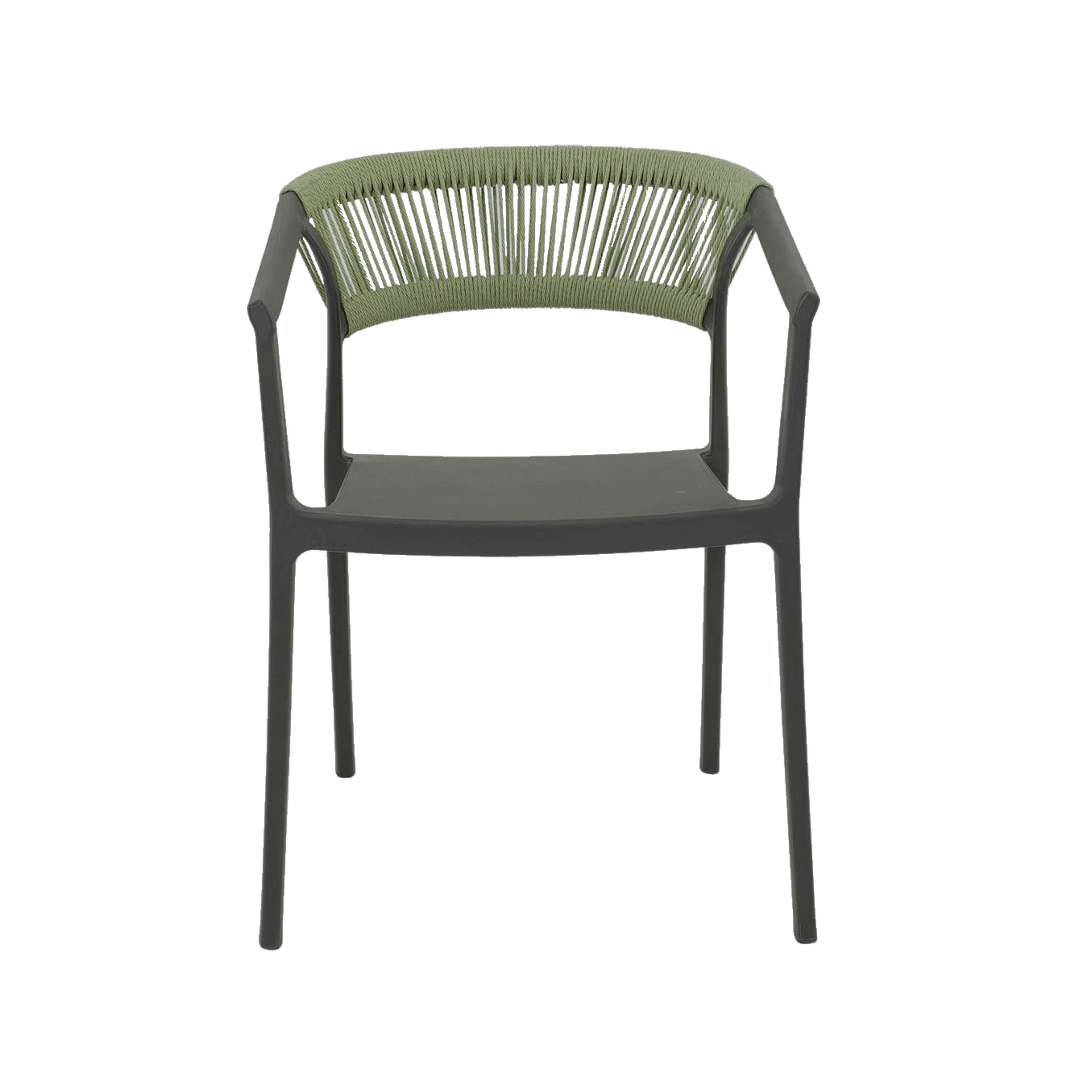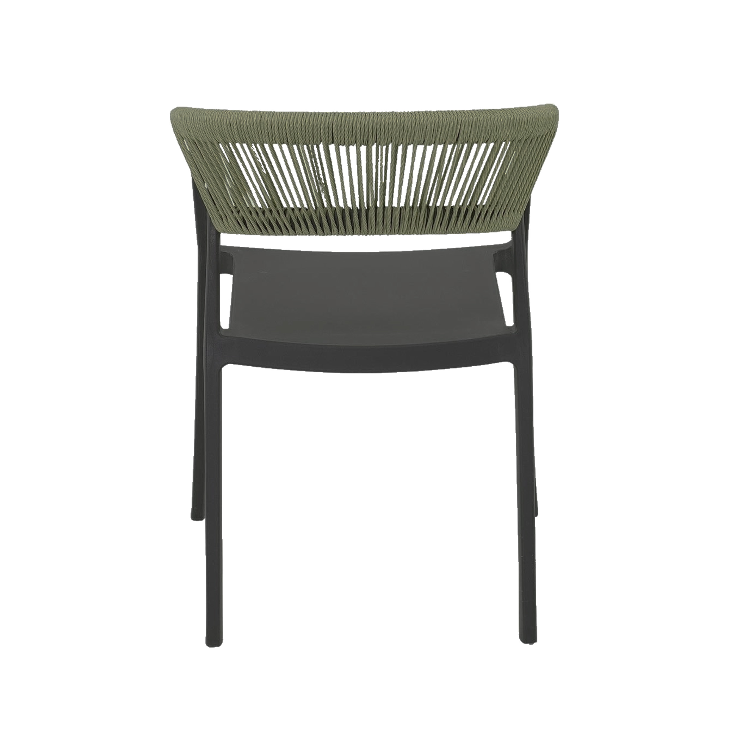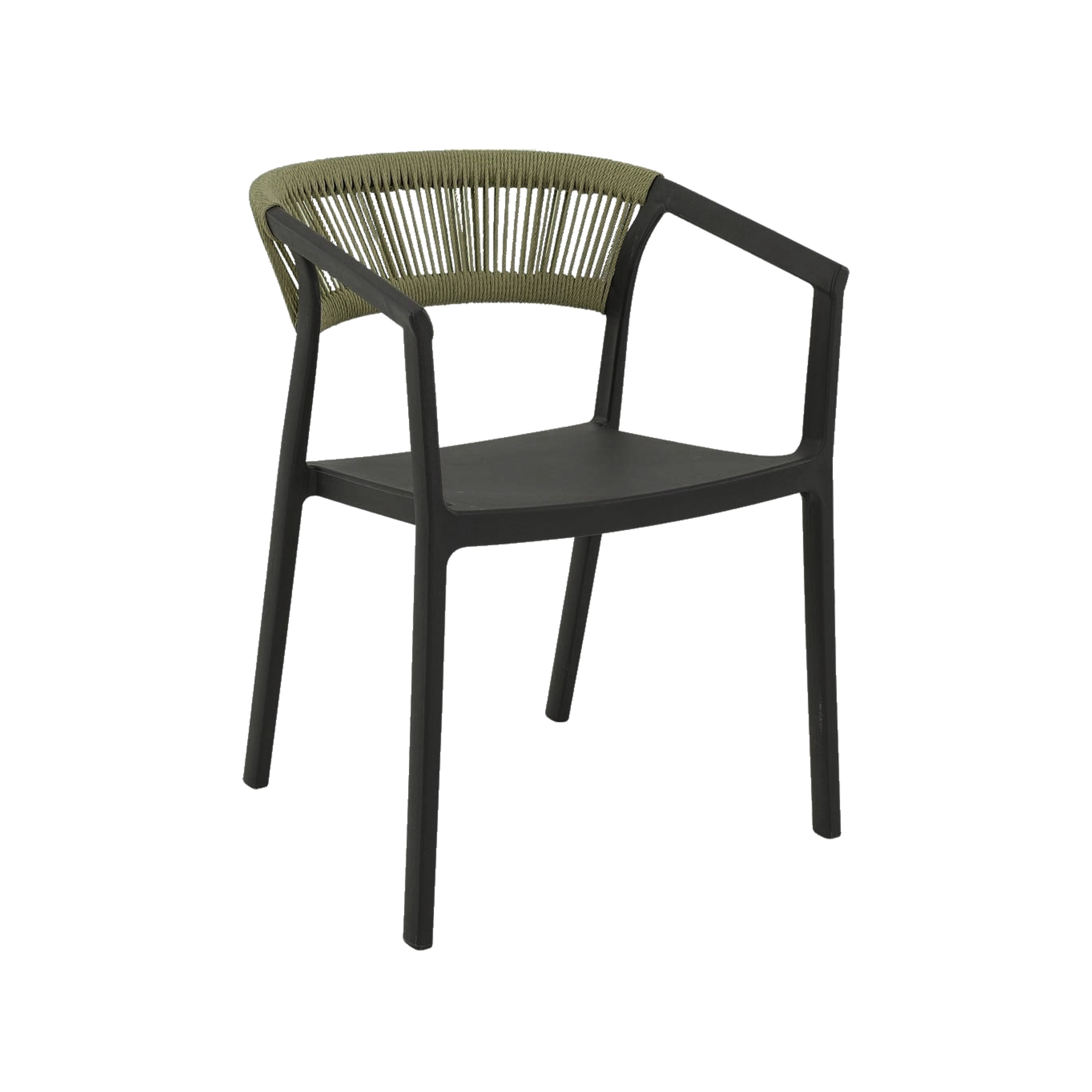 Hospitality patio chair with a stylish and functional design, perfect for outdoor use. The chair has a sturdy plastic frame that is weather-resistant and durable, ideal for intensive use in hospitality venues. The back features beautiful sand-colored wicker, which gives the chair an elegant and modern look. This wickerwork not only provides comfort, but also adds a warm, natural touch to the sleek, industrial frame. The chair is lightweight, easy to move, and stackable, which is convenient for storage in busy hospitality venues.